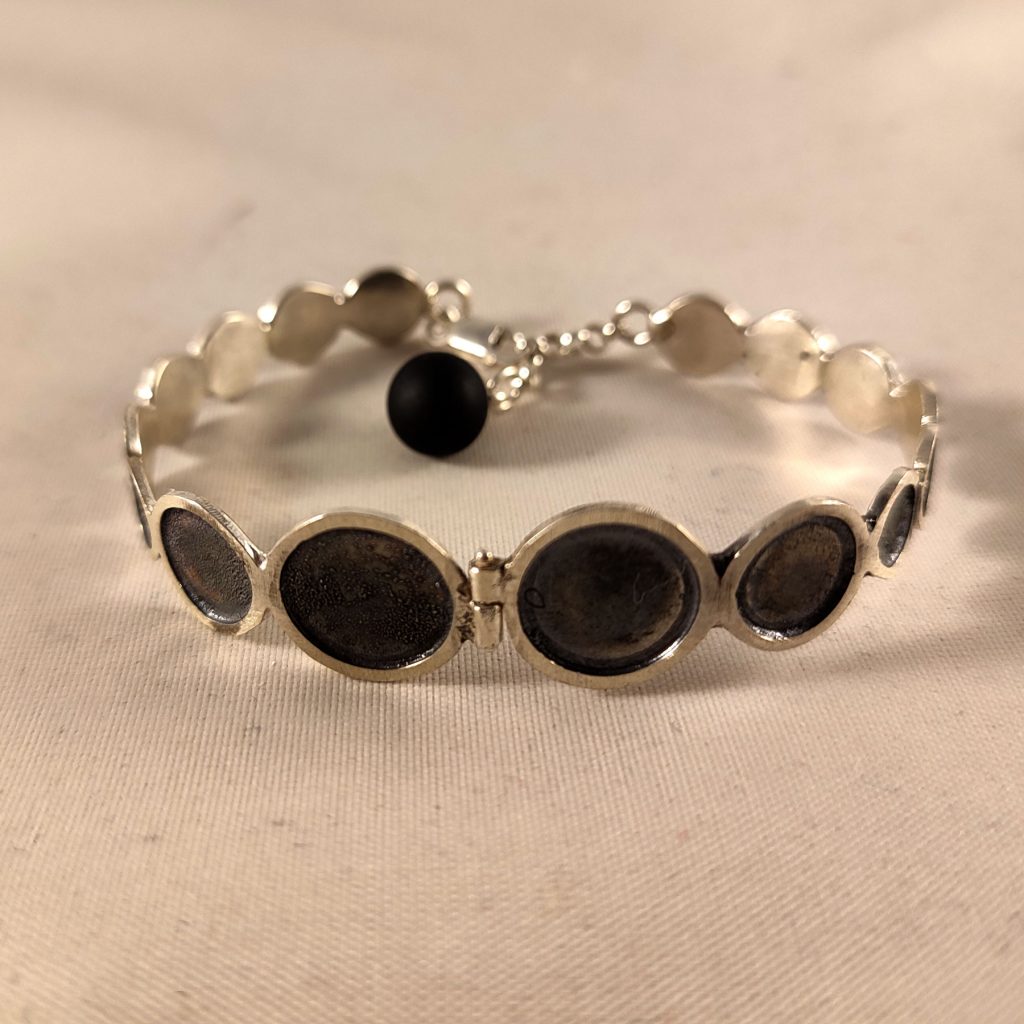 Nosotros utilizamos “plata de ley” o “plata 925”, utilizando distintos tipos de terminaciones como por ejemplo plata pulida, plata con efecto envejecido, plata con baño de rodio antialérgico, etc.