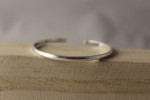 Hecho de plata de media caña de 3,5 mm de ancho, presenta un acabado mate con textura que agrega un elemento visual y táctil único.