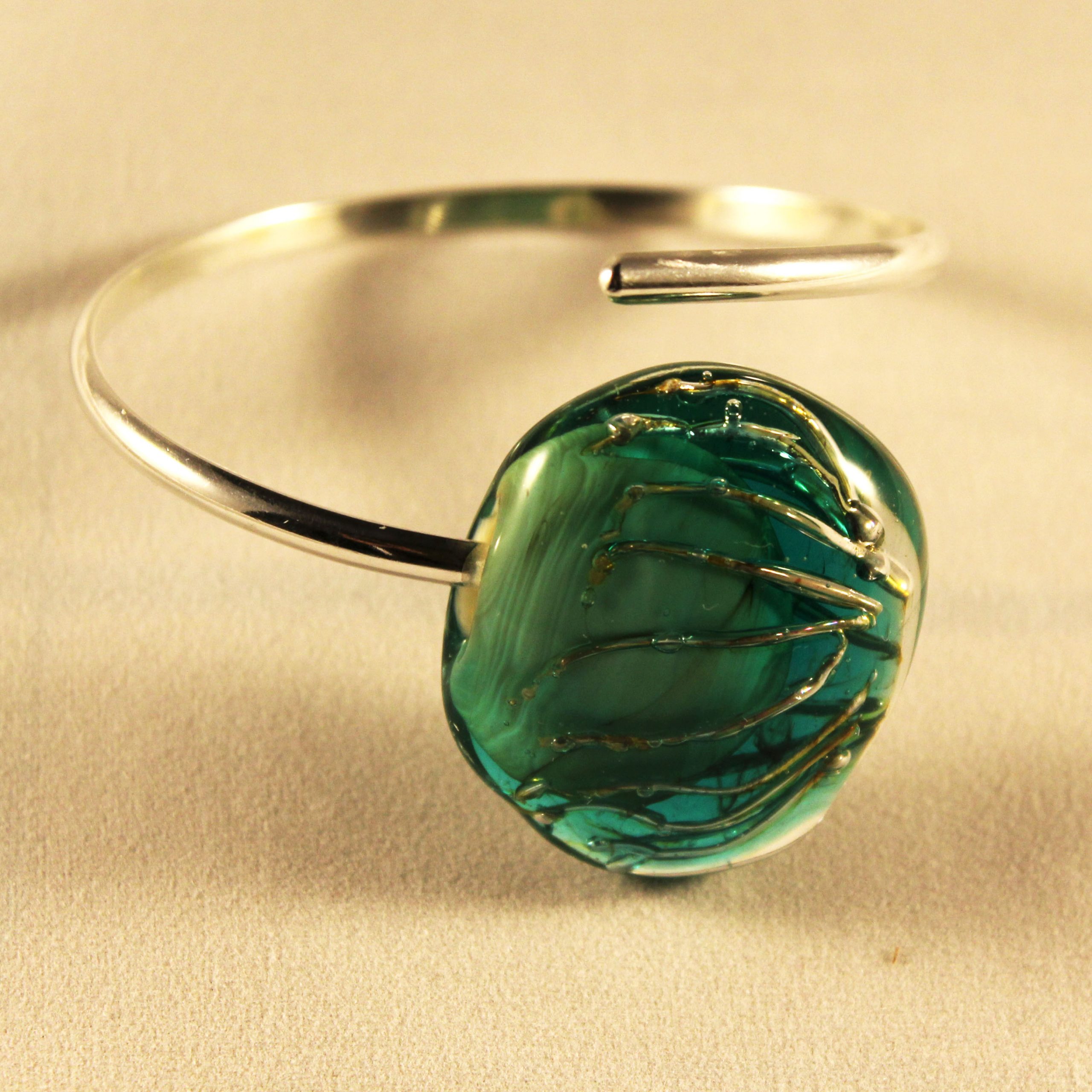 A un precio de 55,00€, te presentamos el Brazalete Verde, una joya que fusiona la frescura del color verde Guara con la elegancia de la plata.