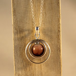 La pieza cuelga de una cadena de plata de 45 cm de longitud y se asegura con un cierre de reasa también de plata.