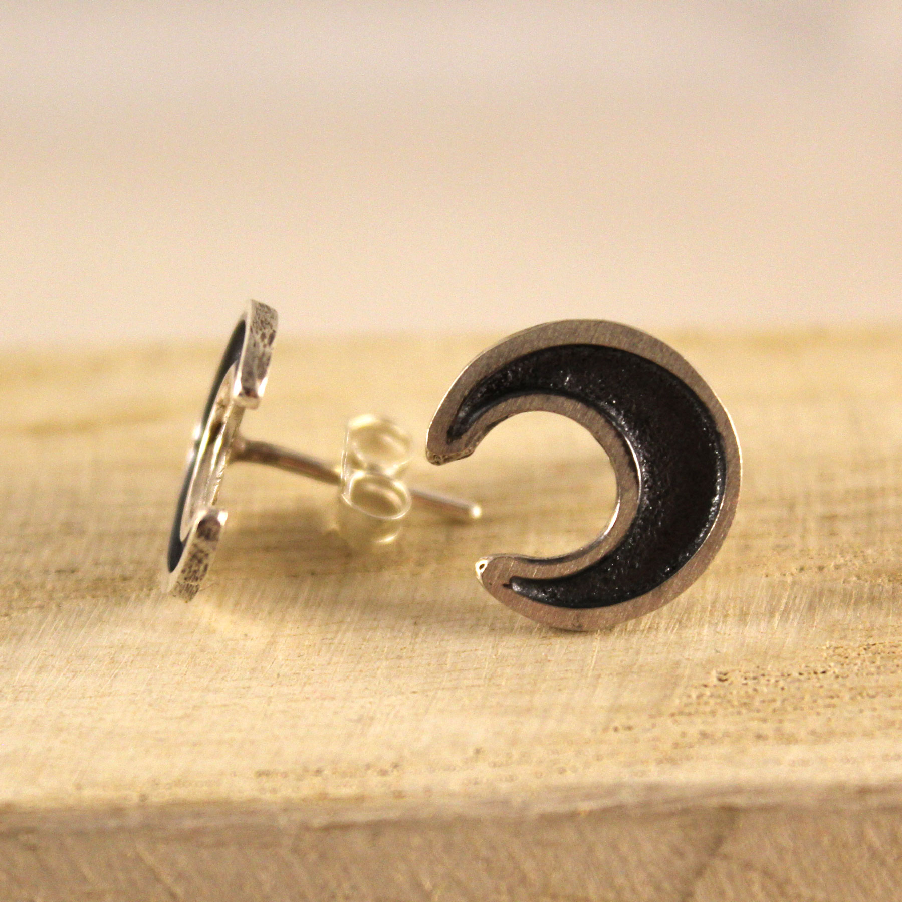 El diseño del pendiente se asemeja a una luna en fase de eclipse, con un diámetro de 1,3 cm que lo convierte en una pieza delicada y cautivadora. La plata con acabado envejecido le otorga un toque vintage y rústico, aportando una sensación de historia y tradición a la joya. El cierre de tuerca a presión asegura que el pendiente permanezca cómodamente en su lugar, permitiéndote lucirlo con confianza en cualquier ocasión.