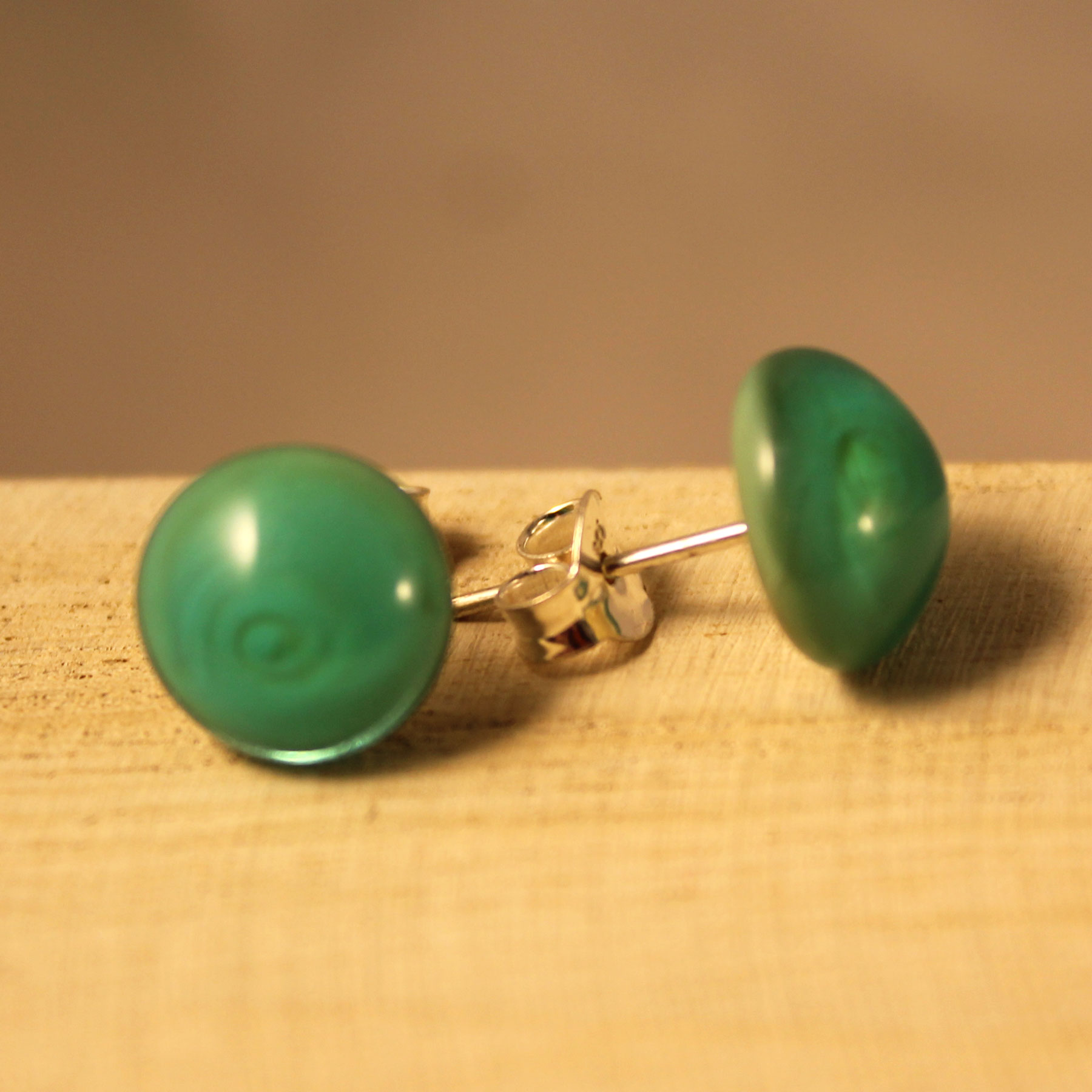 Con un diámetro de la pieza de vidrio de 1 cm y un volumen de aproximadamente 5 mm, estos pendientes de botón tienen una presencia discreta y elegante.
