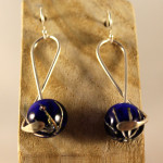 Estos pendientes presentan una esfera de vidrio de Murano en un tono azulón, con hilos de plata en su interior que añaden un toque de brillo y movimiento.