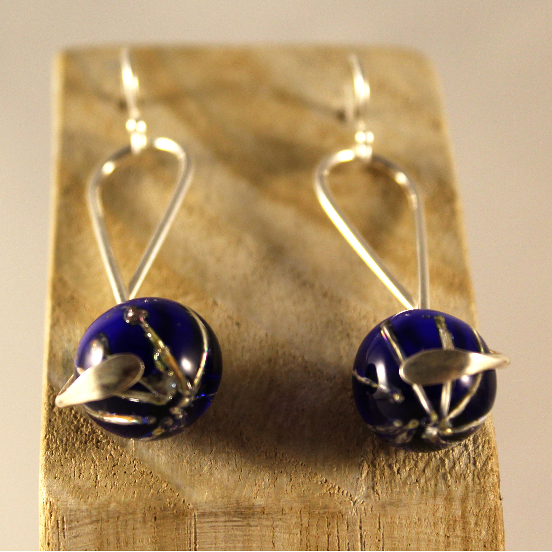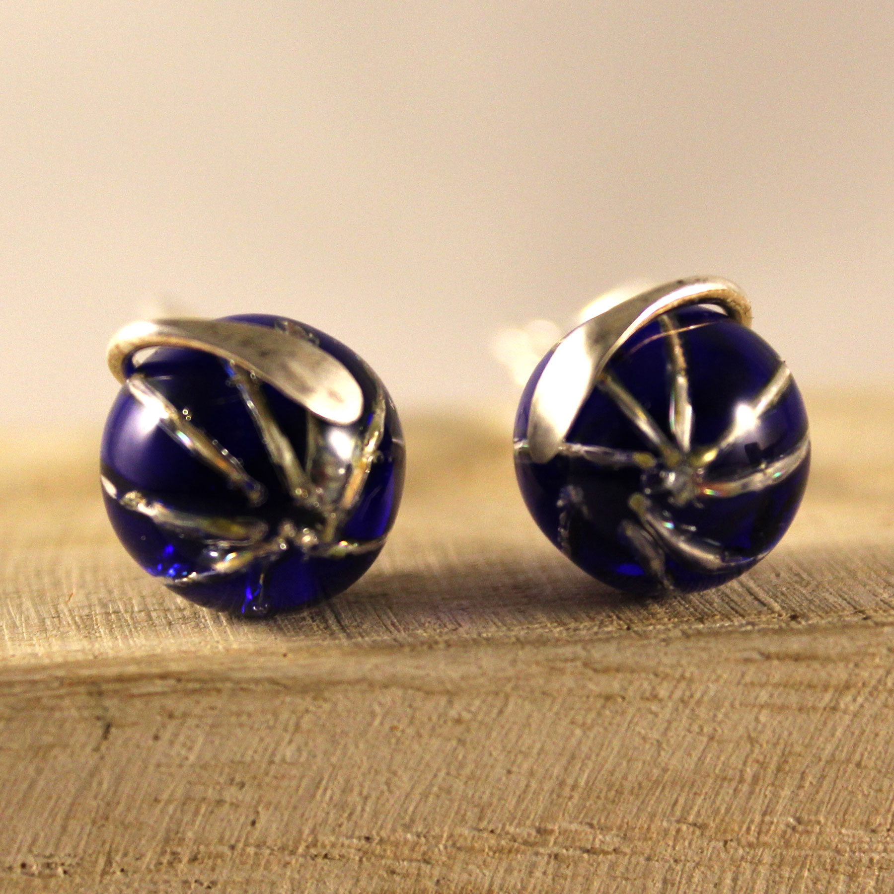 La esfera de vidrio, con un diámetro de 1,1 cm, está hábilmente engarzada en plata, realzando su belleza y añadiendo un toque de sofisticación.