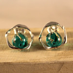 Cada joya presenta una esfera de vidrio de Murano en un tono verde transparente, que incorpora hilos de plata fundidos en su interior para añadir un toque sutil de brillo y detalle.