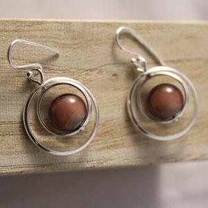 El diseño de estos pendientes presenta un atractivo doble aro de plata que envuelve una esfera de vidrio de color malva.