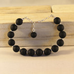 Con 14 esferas negras en acabado mate, con un diámetro de aproximadamente 1 cm, esta pulsera crea un efecto visualmente cautivador. Cada esfera está separada por una pequeña pieza de plata, que agrega un toque de brillo sutil.