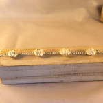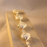Consta de cuatro piezas ovaladas de vidrio de Murano, cada una con un diámetro de aproximadamente 1,5 cm. En el interior de estas piezas de vidrio crema, se entrelazan delicados hilos de plata fundidos, añadiendo brillo y sofisticación a la pulsera.